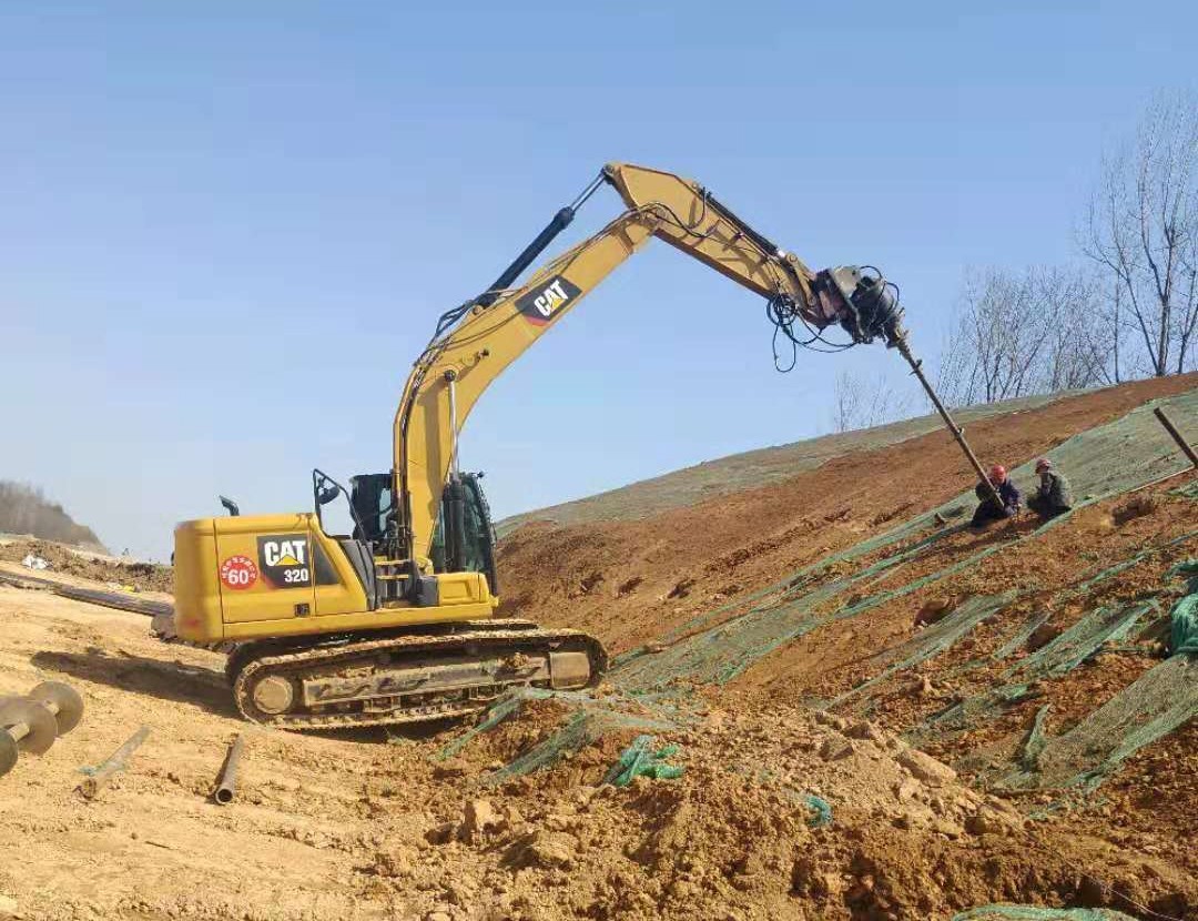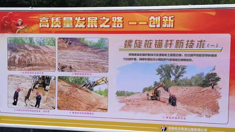 20.5米深路塹, 膨脹土邊坡, 螺旋樁錨加噴射混凝土, 內外排水設計,成功解決膨脹土邊坡失穩難題,成為周南高速項目的樣板工程, 為國內類似邊坡提供了嶄新的解決方案。